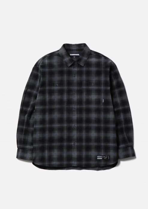 16ウェルコールを染色し、オリジナルチェック柄をプリントしたコーデュロイチェックシャツ。
